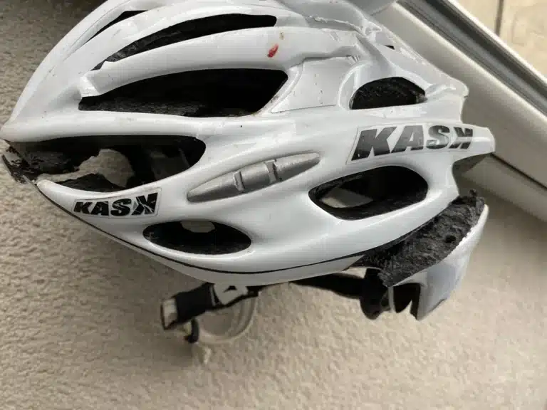 This was the result of a crash my husband had whilst cycling a couple of weeks ago… As you can see, his helmet was totally wrecked!