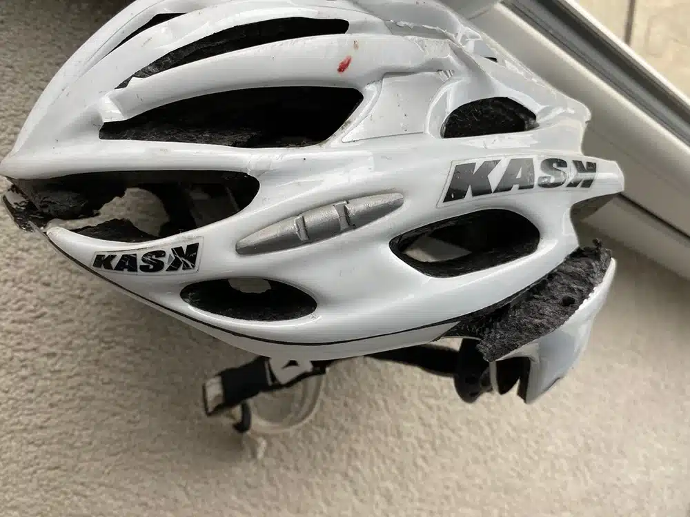 As you can see, his helmet was totally wrecked!